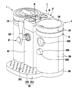 Below: Images from “Beverage Making Apparatus” (App. No. 15/598,681), a patent application filed May 18, 2017, that currently pending before the USPTO.