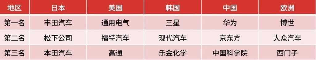 每个地区与可持续发展目标相关的专利数量最多的前 3 家公司: